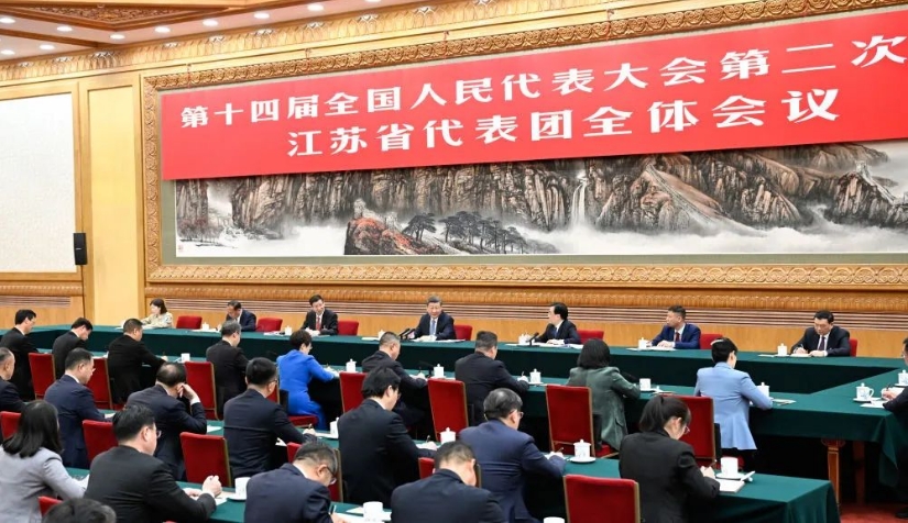 2024年3月5日,習近平參加他所在的十四屆全國人大二次會議江蘇代表團審議。新華社記者 謝環(huán)馳 攝