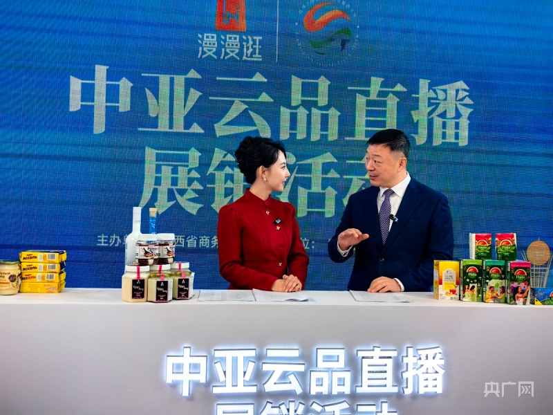 第七屆絲博會(huì)上,一場(chǎng)中亞云品展銷活動(dòng)直播正在進(jìn)行(央廣網(wǎng)記者 陳鏘 攝)