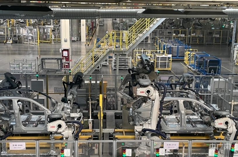 工業(yè)機(jī)器人正在完成焊接等工作(央廣網(wǎng)記者 劉昱 攝)