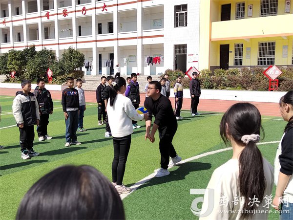 康陽陽老師在體育匯報課上為學生講解排球擊球要領