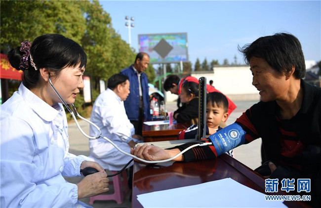 11月4日,安徽醫(yī)科大學(xué)第一附屬醫(yī)院的醫(yī)生為村民體檢。 當(dāng)日,安徽省肥西縣豐樂鎮(zhèn)邀請安徽醫(yī)科大學(xué)第一附屬醫(yī)院的醫(yī)生來到鄉(xiāng)村,免費為周邊村民提供醫(yī)療咨詢、健康體檢、醫(yī)療保健等衛(wèi)生服務(wù)。新華社記者劉軍喜攝 11月4日,安徽醫(yī)科大學(xué)第一附屬醫(yī)院的醫(yī)生為村……